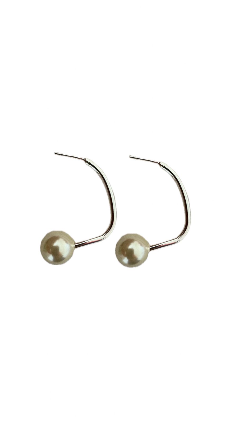 Brinco meia argola em metal com perola em resina;