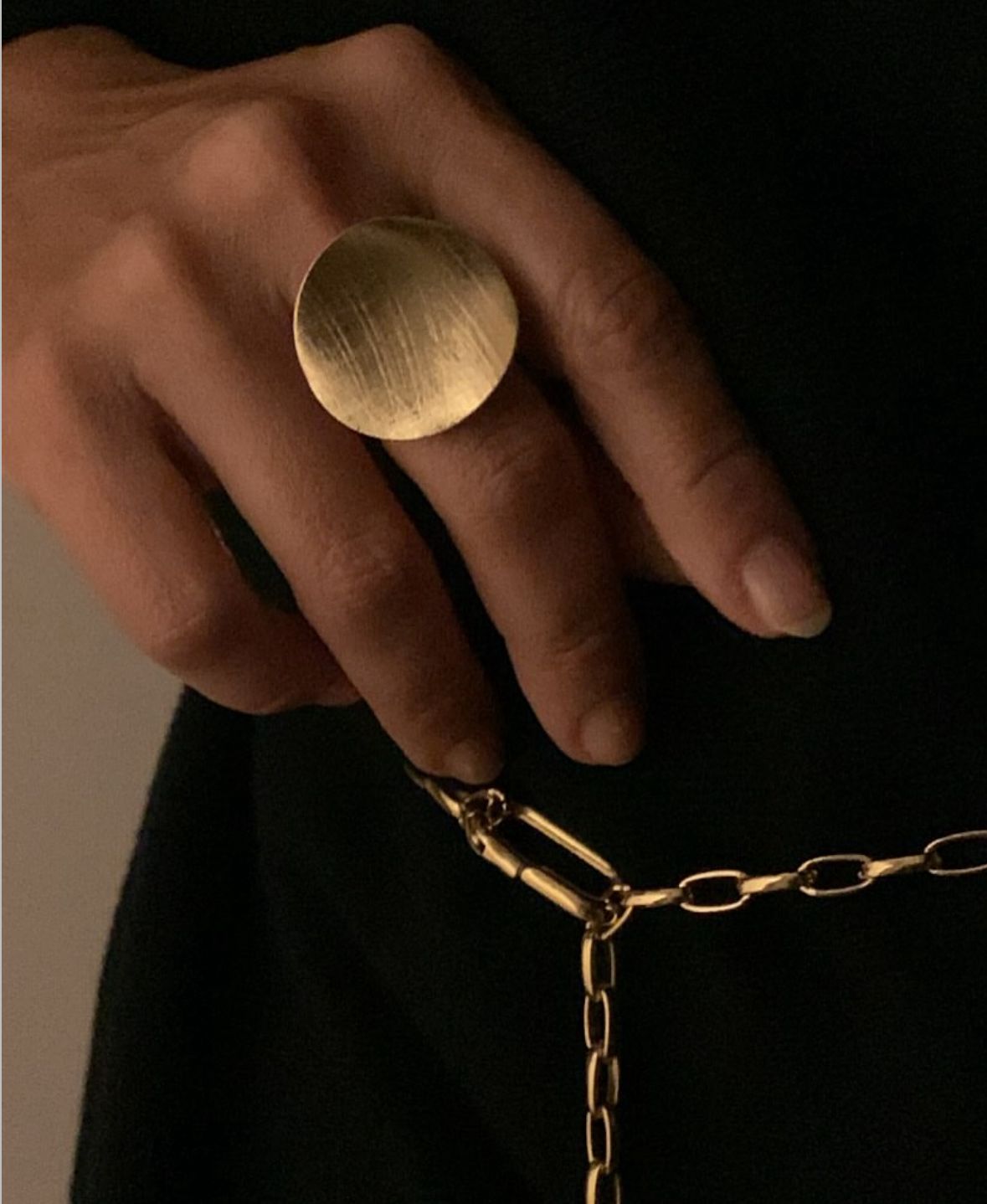 Anel chapa, ajustável em metal texturizado e design maximalista