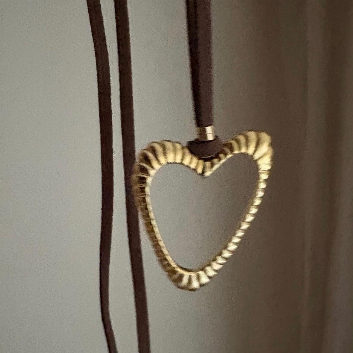 Colar em cordão de couro com pingente coração banhado a ouro 18k